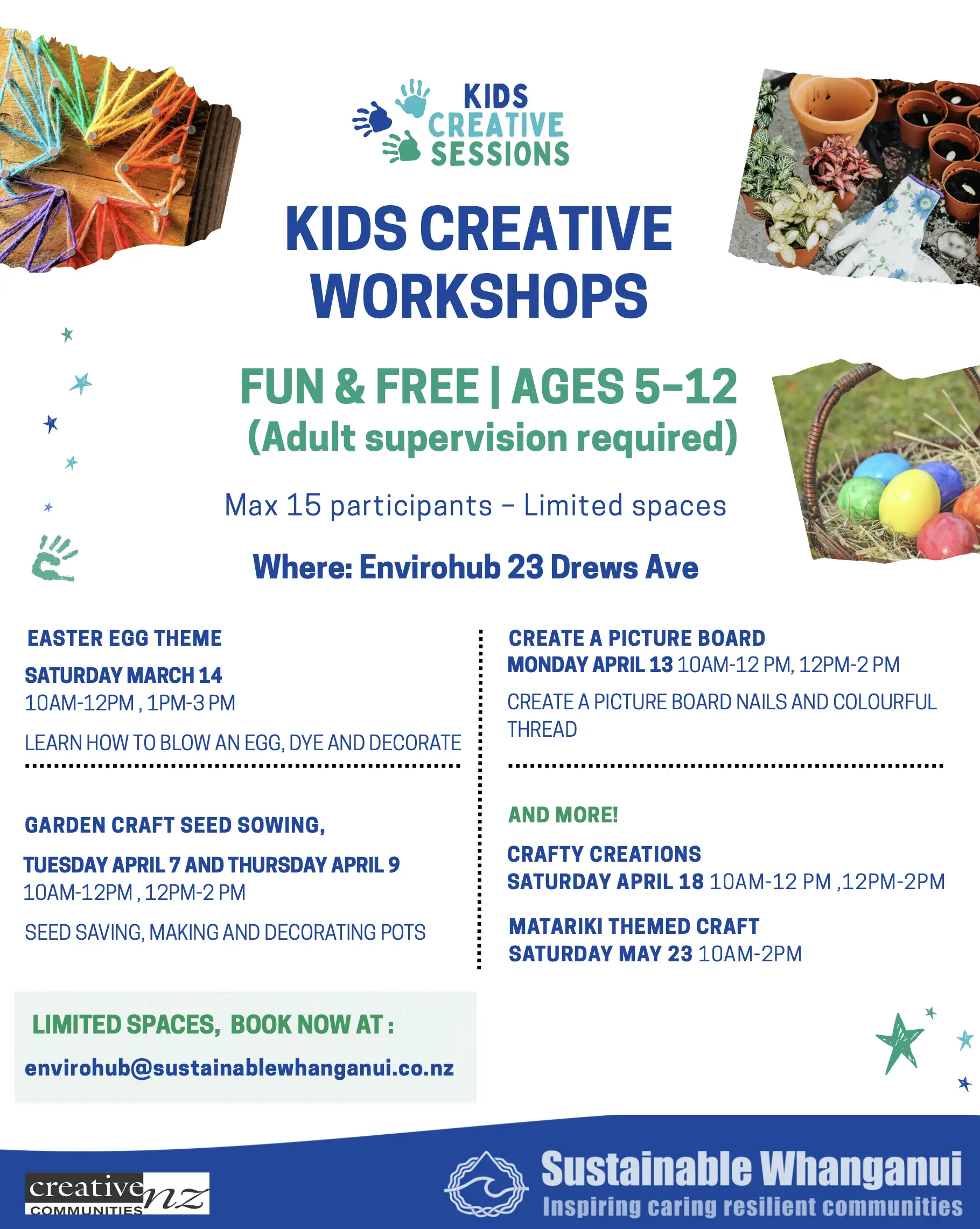 With a focus on utilising recycled and natural materials, these workshops aim to inspire tamariki to think about the environment in a sustainable way, whilst having fun and getting creative.